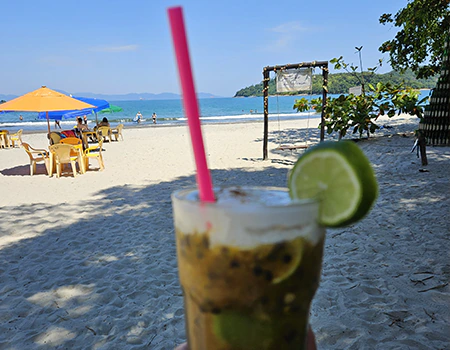 Durante o dia, desfrute do nosso quiosque pé na areia com cardápio completo até às 18h