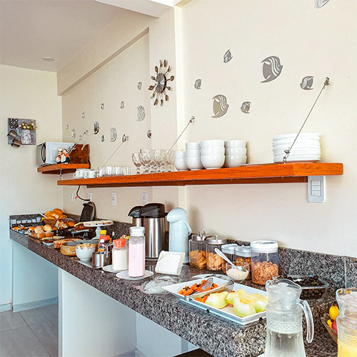 Como um mimo diário, oferecemos um café da tarde gratuito com bolos fresquinhos, biscoitos variados e chá ou café. Essa tradição, que remete ao acolhimento do interior, encanta especialmente os hóspedes que retornam da praia ou de passeios pela região.